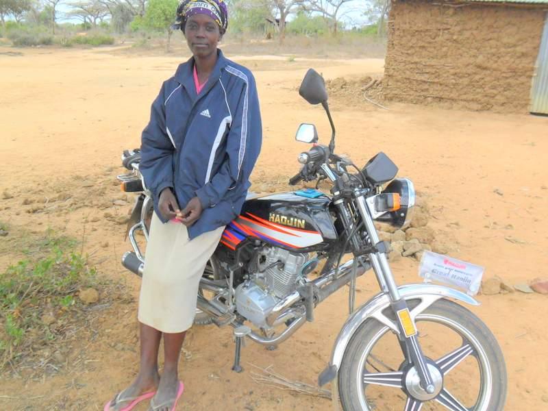 Kiva borrower Alice and her moto-taxi.